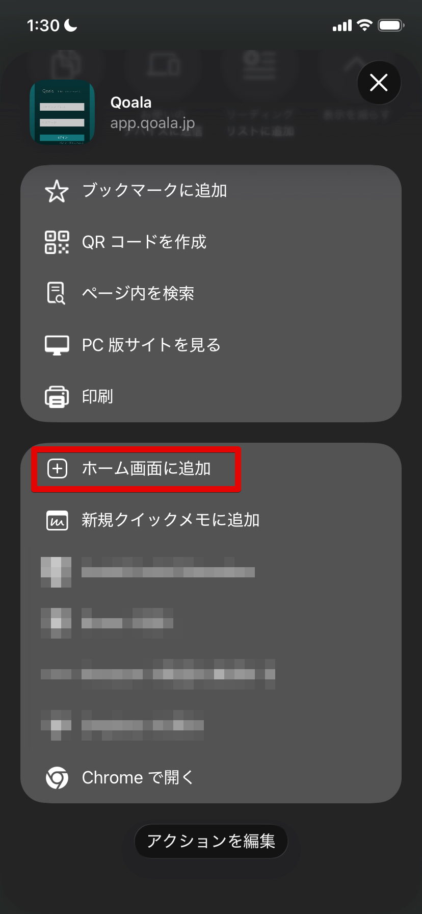 3. 「ホーム画面に追加」をクリックしてください